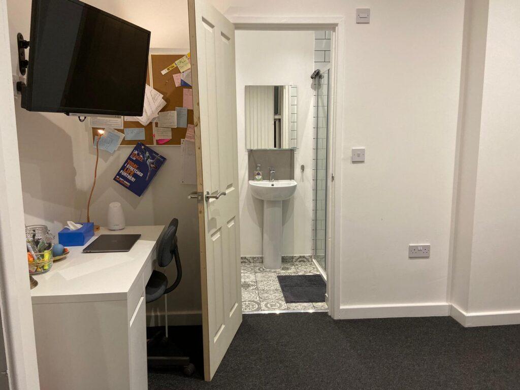 6 bedrooms have en-suites, 2 bedrooms have their own separate bathroom. Each room is fully furnished with a bed, cupboard and desk.